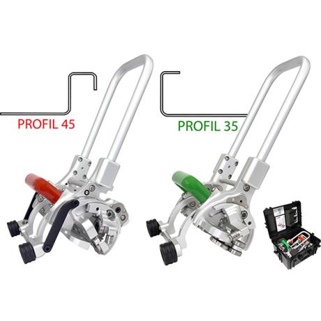 La profileuse manuelle PROFIL-TOP permet de réaliser les deux plis du profil 35 et les trois plis du profil 45 en même temps. L’outil est très simple d’utilisation pour un travail sans effort. Aucun défaut d’ondulation ou de marquage sur la matière ne sera présent.