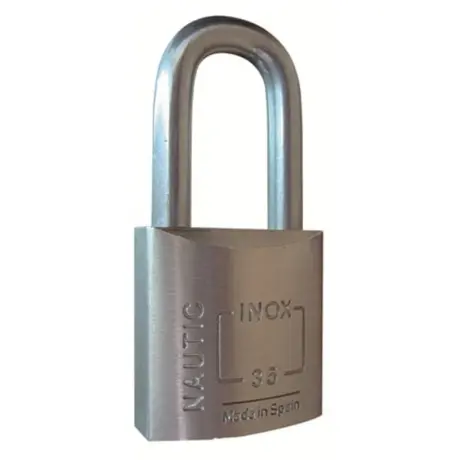 Cadenas inox anticorrosion idéale pour les extérieurs et les environnements marins. Présente un niveau de sécurité entre 2 et 3, certifié conforme à la Norme européenne EN12320. Un traitement chimique extérieur et intérieur de 15 micras le rend inaltérable face au brouillard salin et garantit un fonctionnement optimal sur toute sa durée de vie. Dans ce cadre, il a été testé pour 3 000 heures en essai de chambre à brouillard salin. Corps en laiton poli avec trou de drainage et un revêtement de nickel chimique spécifique pour une résistance maximale à l'oxydation, y compris dans des conditions extrêmes. Anse en acier inoxydable et mécanisme de fermeture à travers un double accrochage en acier inoxydable. Tous ses composants (goupilles, contre-goupilles et ressorts) sont inoxydables, il inclut deux clés plates en laiton.