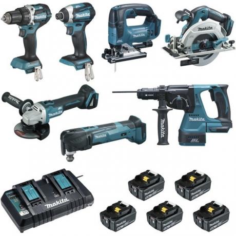 Cinq batteries Li-Ion 5,0 Ah avec indicateur de niveau de charge. Batterie puissante à usage général pour les outils Makita LXT® 18V. Idéal pour les outils à forte consommation d'énergie. Temps de charge env. 45 min. avec un chargeur rapide.