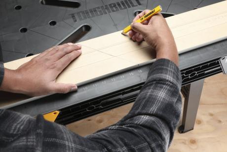 L'établi ToughBuilt® QuickSet est une surface de travail robuste qui s'installe en quelques secondes. Poussez simplement le déverrouillage et tirez la poignée vers le haut pour déplier les pieds afin de créer une grande surface de travail n'importe où. Les pieds en métal robustes peuvent supporter jusqu'à 450 kg. La grande surface de travail offre une large gamme d'applications : idéale pour couper, percer, serrer et bien plus encore. Il est compatible avec la vaste gamme de pochettes ClipTech de ToughBuilt pour une organisation ultime des outils. Clipsez instantanément les pochettes et les outils pour rendre chaque travail organisé et efficace. De votre atelier à votre camion en passant par le chantier, cet établi est facile à transporter partout où vous devez aller.
