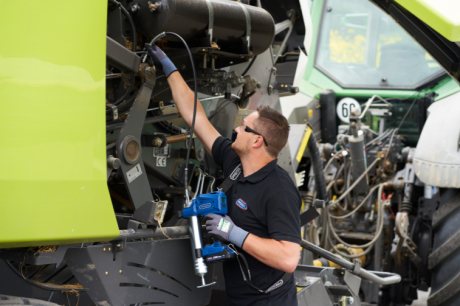 - L'état de charge de l'accumulateur est indiqué à la pompe à graisse et à l'accumulateur
