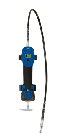 - Affichage intégré avec compteur de débit de graisse, indicateur de charge de la batterie et indication du débit de graisse