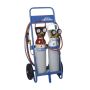 - 1 chariot de manutention monté sur deux roues, portable,réalisé en tube d’acier, équipé d’un enrouleur de tuyau et de roulettes aux extrémités des poignées pour utilisation en position horizontale respectant l’inclinaison des bouteilles prévue par les normes de sécurité.