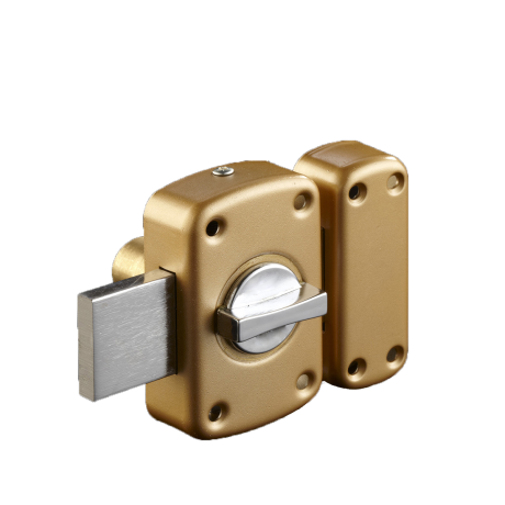 Verrou de sûreté à bouton bronzé or, dimensions 90 x 56 Coffre et gâches acier embouti.