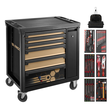 • Fiabilité et ergonomie FACOM : sécurité centralisée, charge 900 kg, surface de travail renforcée et conception 100 % atelier.